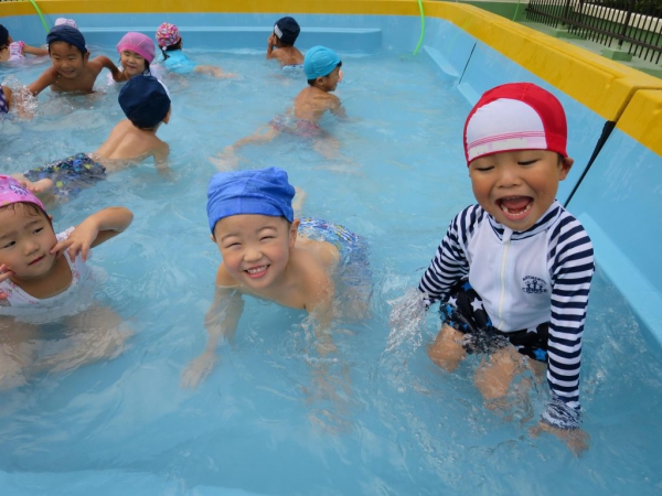 大好き水遊び 2018.08.22 日常・保育 admin 6月から始まる幼稚園での水遊び。暑い夏をちょっとしのぐ楽しみです。バシャバシャおおはしゃぎで遊びます。太陽の光と子どもたちの笑顔が重なってキラキラしている様子は、見ているこちらも嬉しくなります。水が怖くない子は顔を水につけたりもしますが、危険がないように注意してこれからも楽しみの一つとしていきたいです。