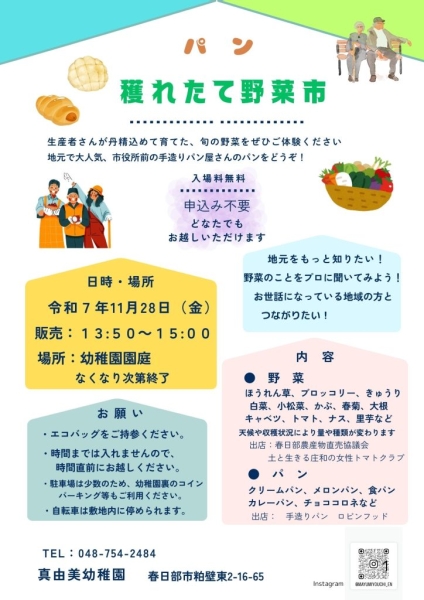 穫れたて野菜と地域で人気のロビンフッドのパンを販売します。
