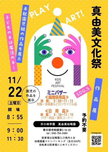 22日(土)に作品展、バザーなど開催します。未就園児の皆さんもどうぞご来園ください!